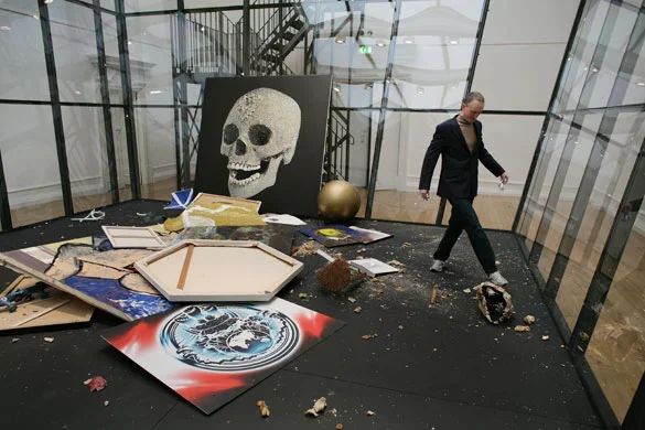 Micheal Landy’s Art Bin from 2012, where lots of famous artists gave their work to be trashed in a big box. Satisfying that some Damien Hirst was the first to go in???